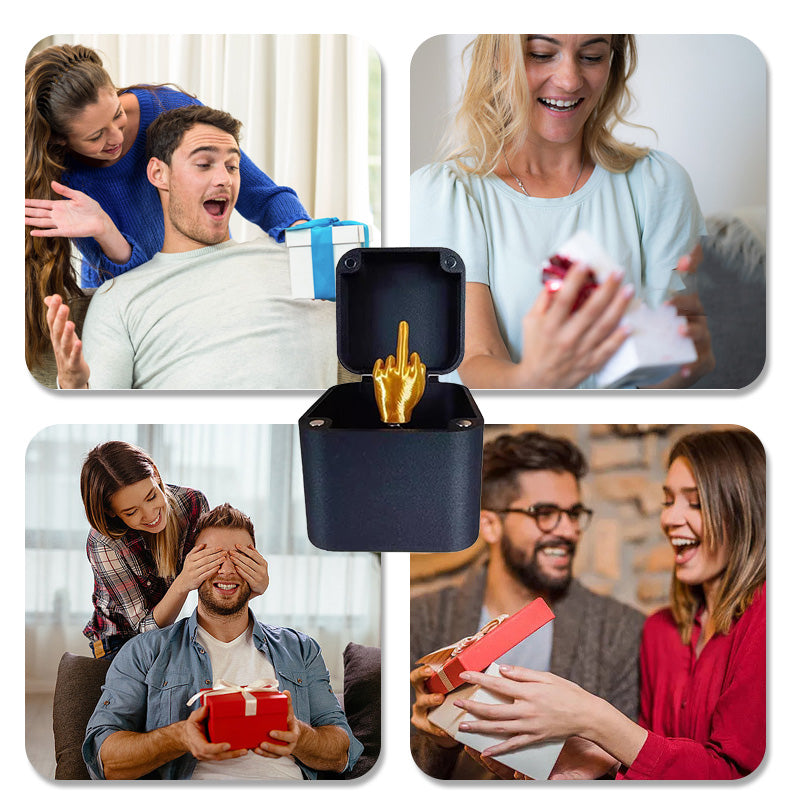 Dieses Geschenk ist jedes Mal ein Treffer. Die Überraschung mit dem Mittelfinger wird perfekt umgesetzt, und das elegante Schwarz-Gold-Design macht es zu einem stilvollen Scherz. Perfekt für jeden, der gerne lacht!