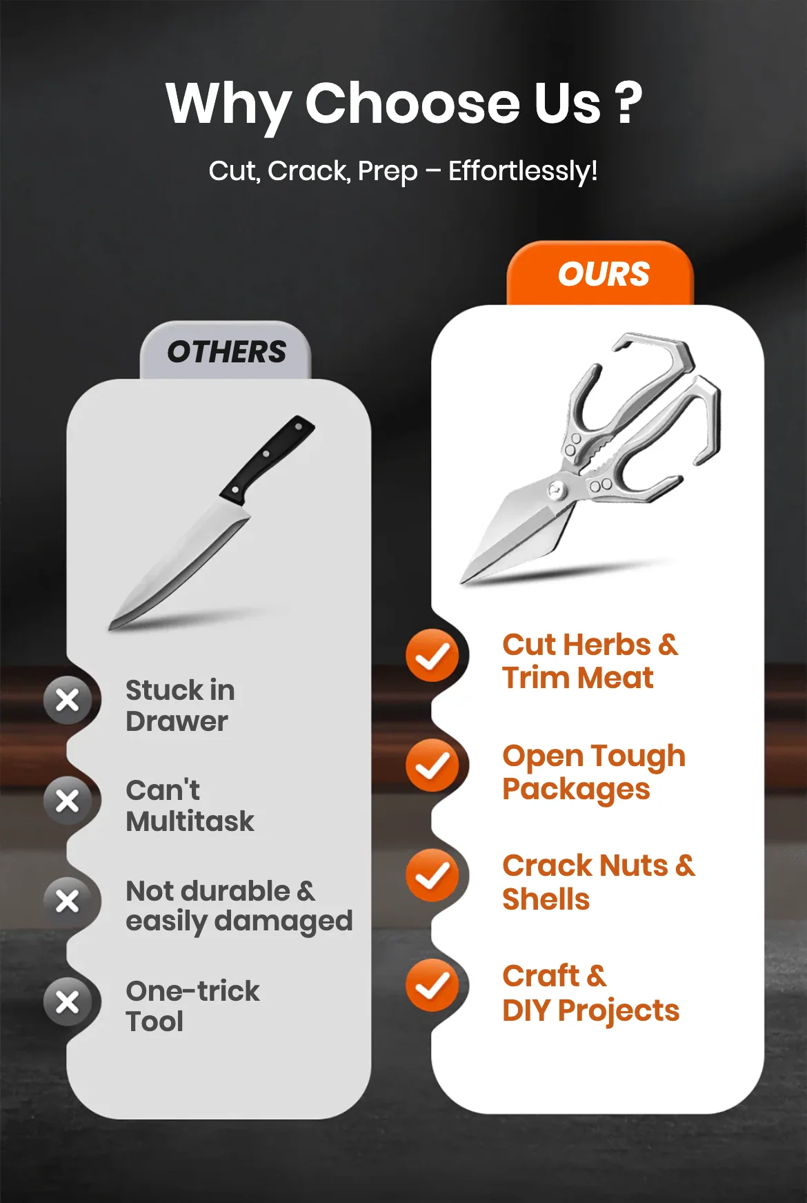 When it comes to multifunctional kitchen tools, not all shears are created equal. CutForge™ Heavy-Duty Kitchen Shears stand out because we combine precision engineering, premium materials, and practical design to deliver unmatched performance.