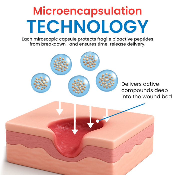 The secret lies in DiabeHeal™’s breakthrough Microencapsulation Technology. Think of these microscopic capsules as tiny delivery drones, transporting potent, clinically-proven bioactive peptides directly into your wound bed.
