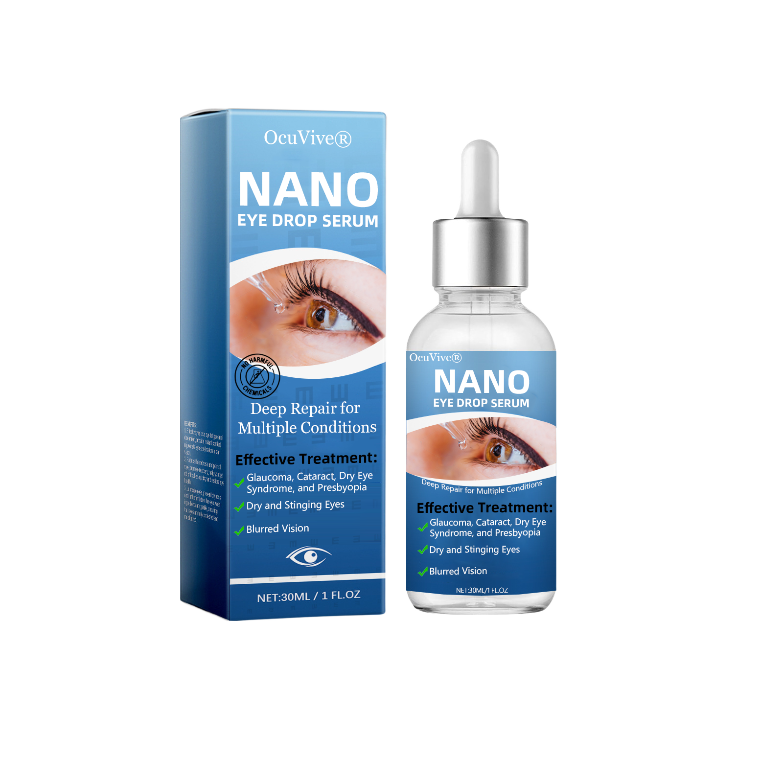 OcuVive®Nano Eye Drops Serum use the most advanced nanotechnology, employing polymer nanoparticles to precisely deliver active ingredients, enhancing the drug's penetration and effectiveness, ensuring it stays on the ocular surface for a longer period.